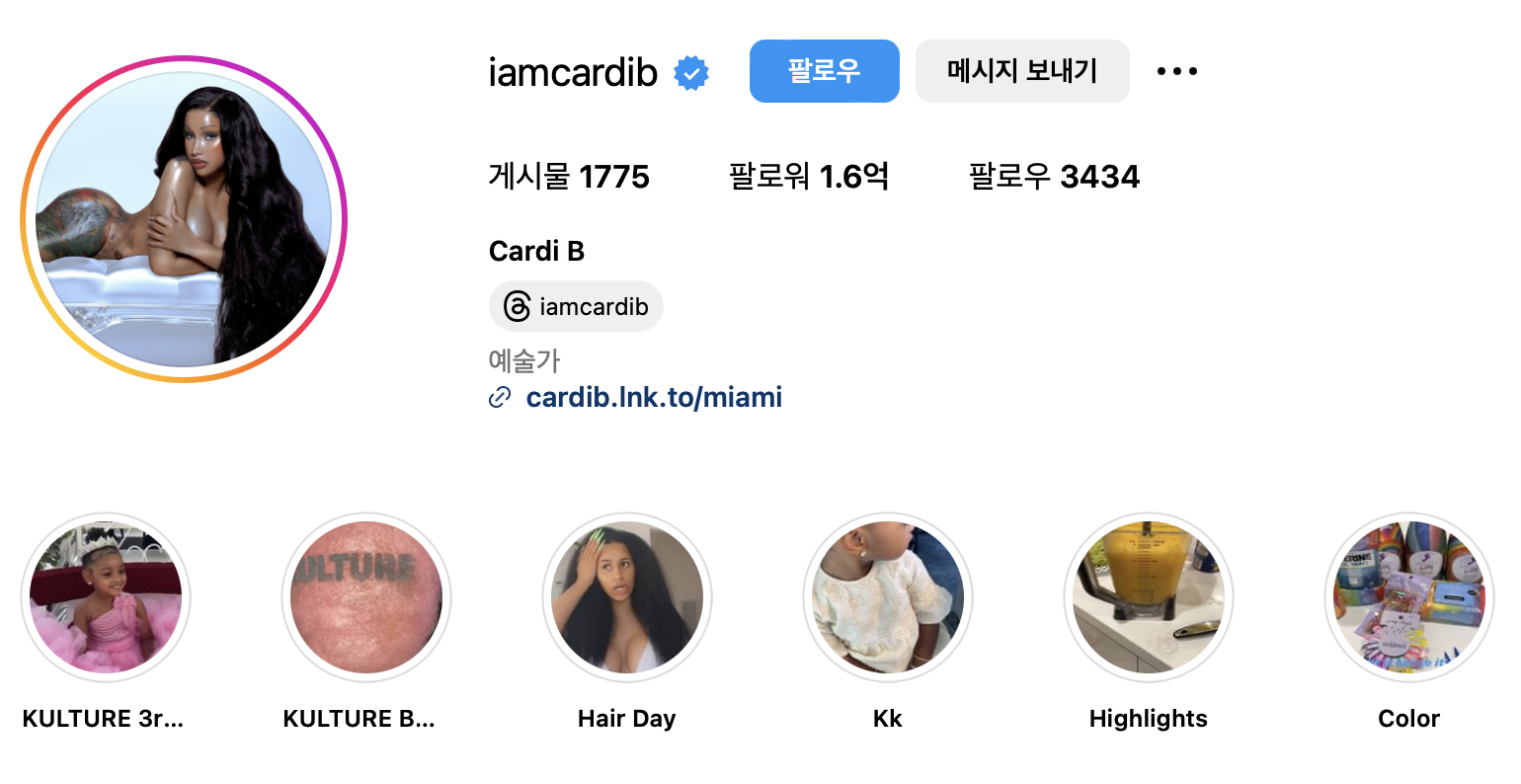 인스타그램 계정: @iamcardib