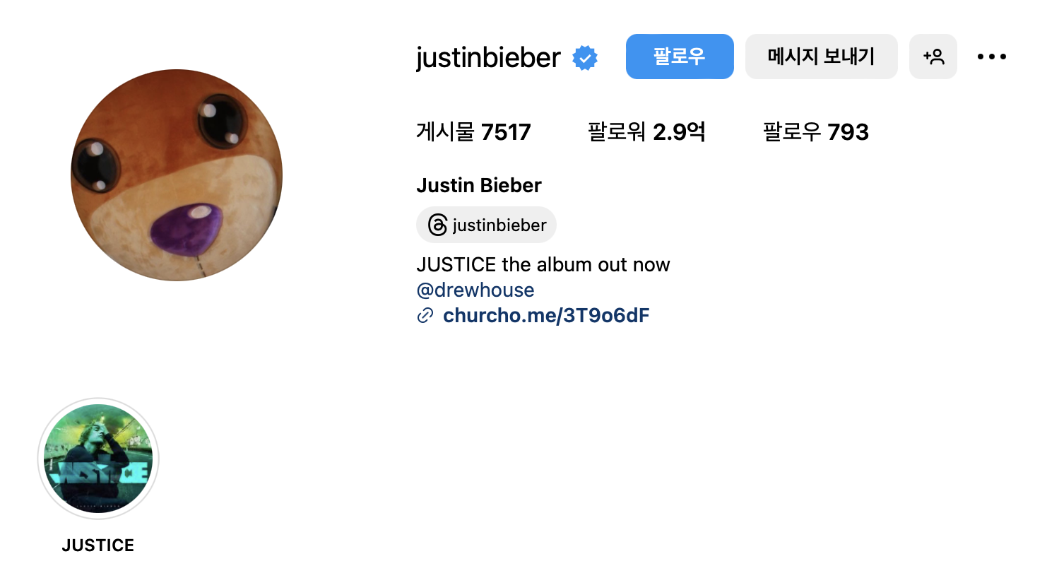 인스타그램 계정: @justinbieber