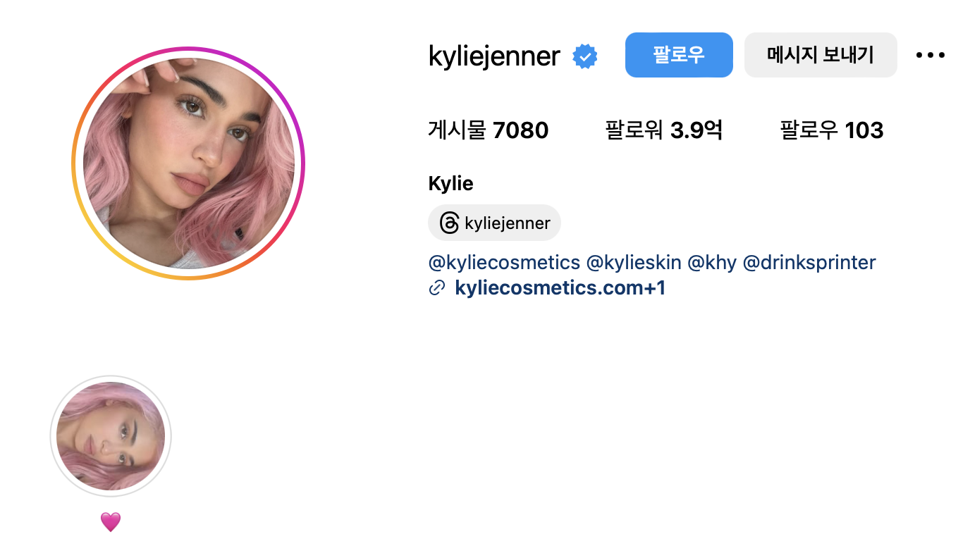 인스타그램 계정: @kyliejenner