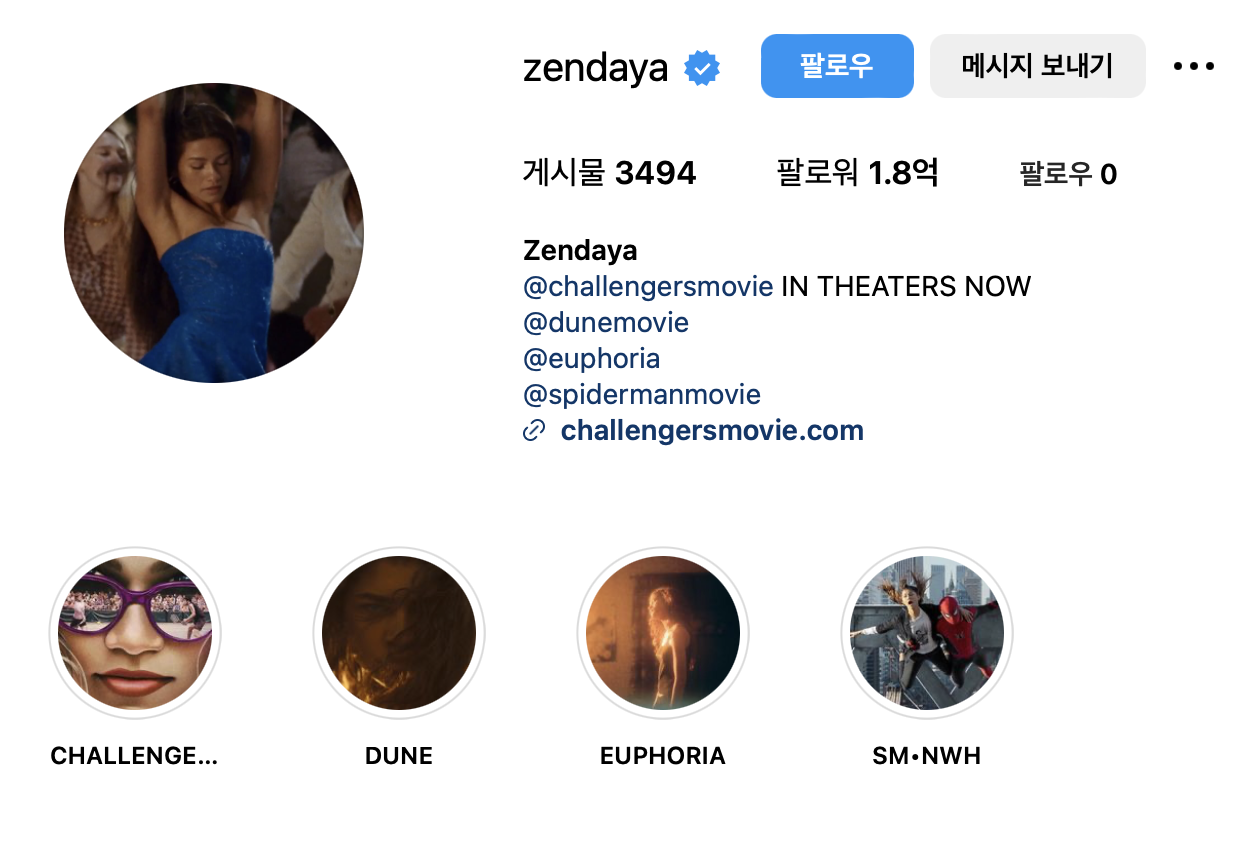 인스타그램 계정: @zendaya