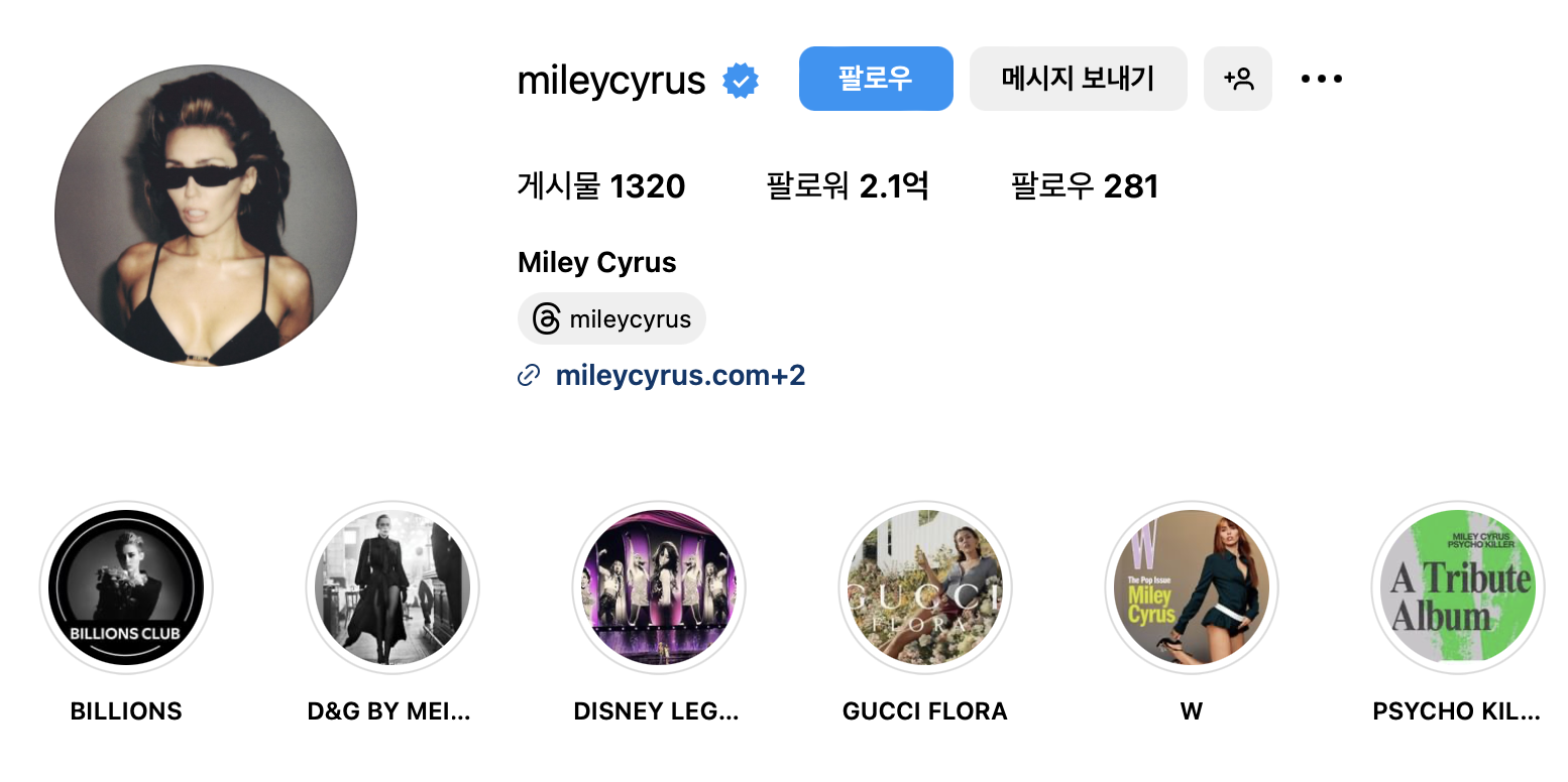 인스타그램 계정: @mileycyrus