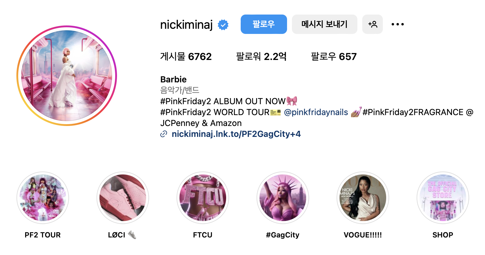 인스타그램 계정: @nickiminaj