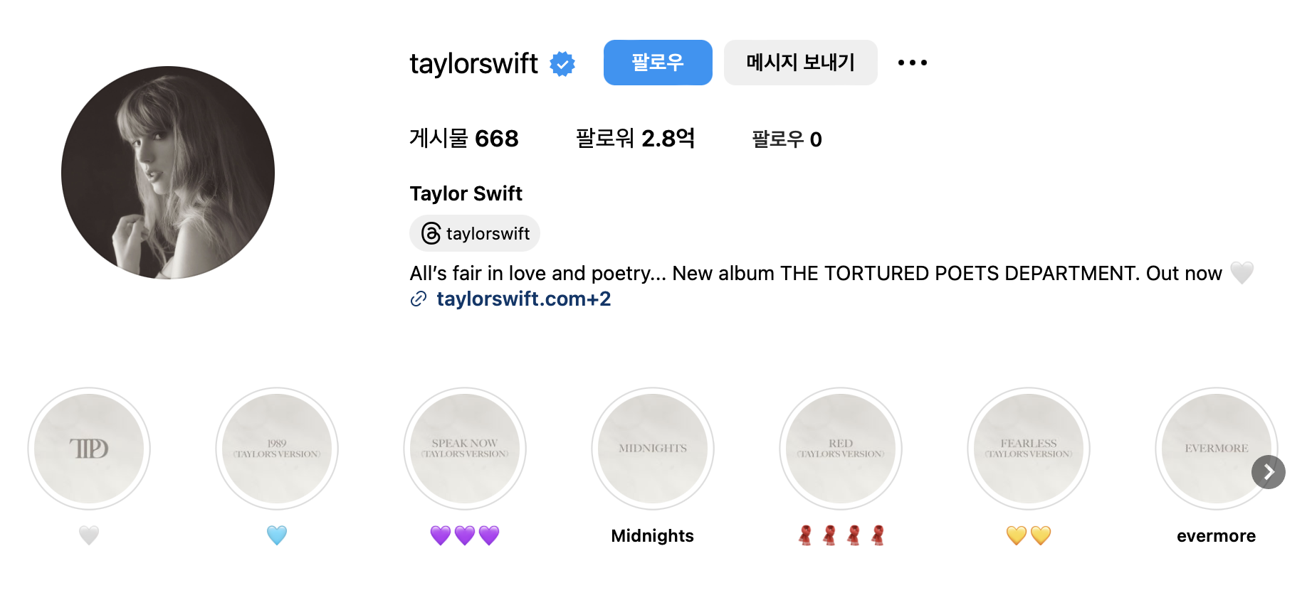 인스타그램 계정: @taylorswift