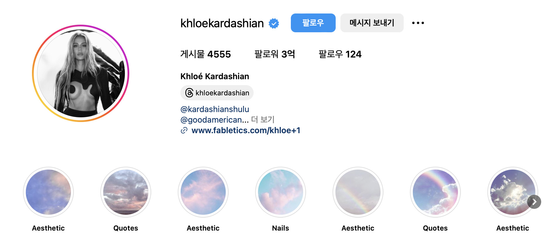 인스타그램 계정: @khloekardashian